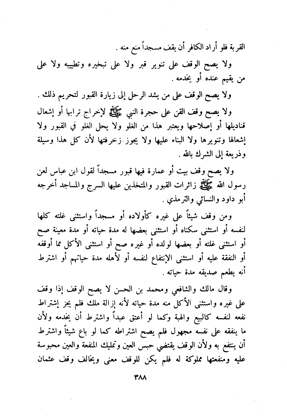 ولا يصح الوقف على من يشد الرحل إلى زيارة القبور لتحريم ذلك.