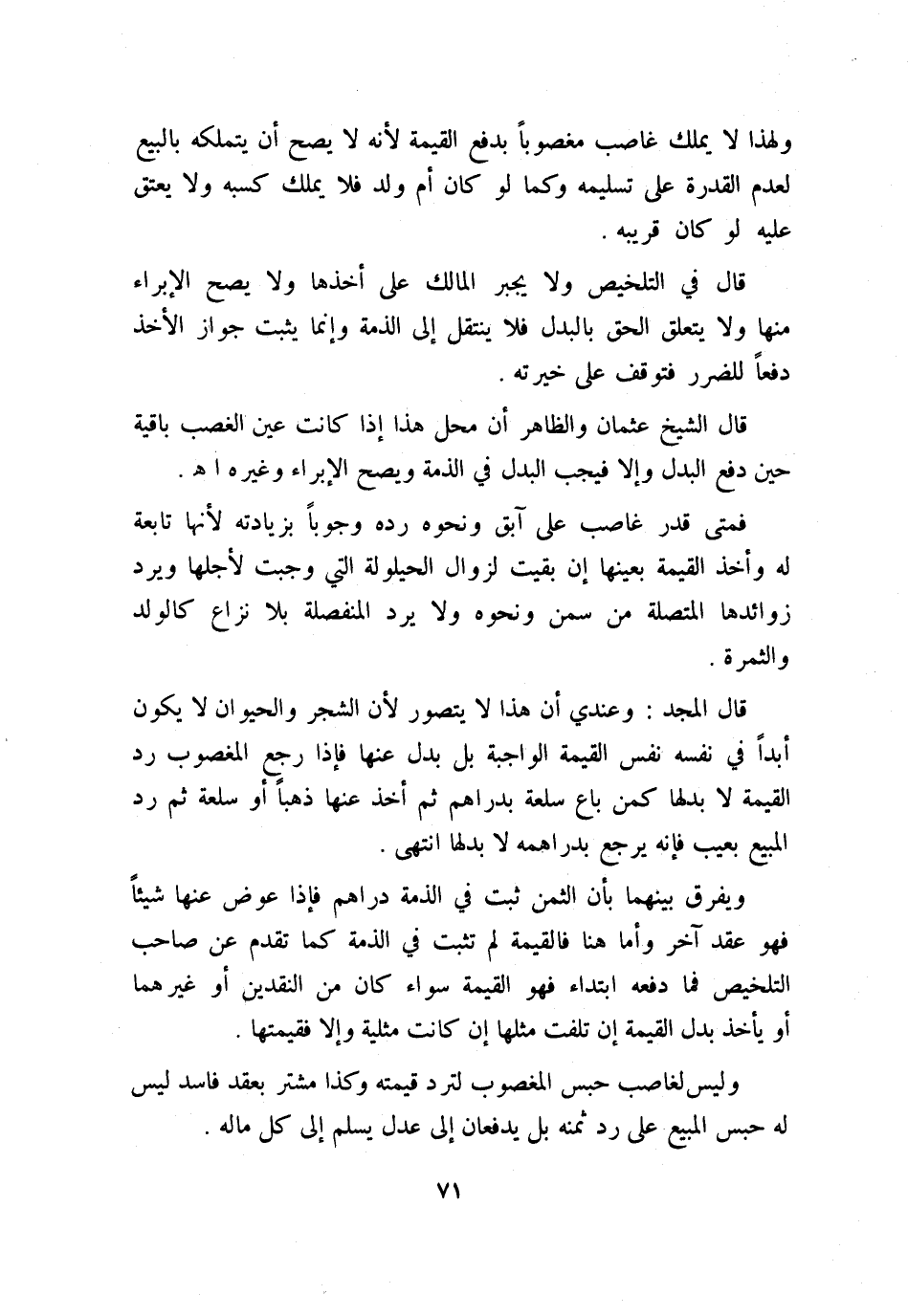 ولهذا لا يملك غاصب مغصوبًا بدفع القيمة؛ لأنه لا يصح أن يتملكه بالبيع؛ لعدم القدرة على تسليمه، وكما لو كان أم ولد فلا يملك كسبه ولا يعتق عليه لو كان قريبه.
