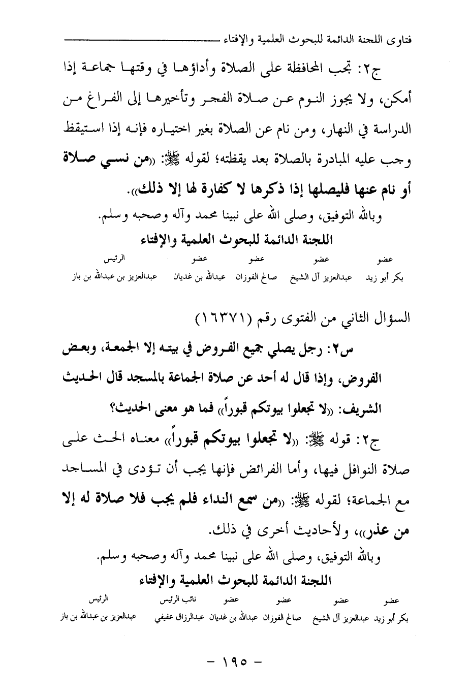 بكر أبو زيد ... عبد العزيز آل الشيخ ... صالح الفوزان ... عبد الله بن غديان ... عبد الرزاق عفيفي ... عبد العزيز بن عبد الله بن باز