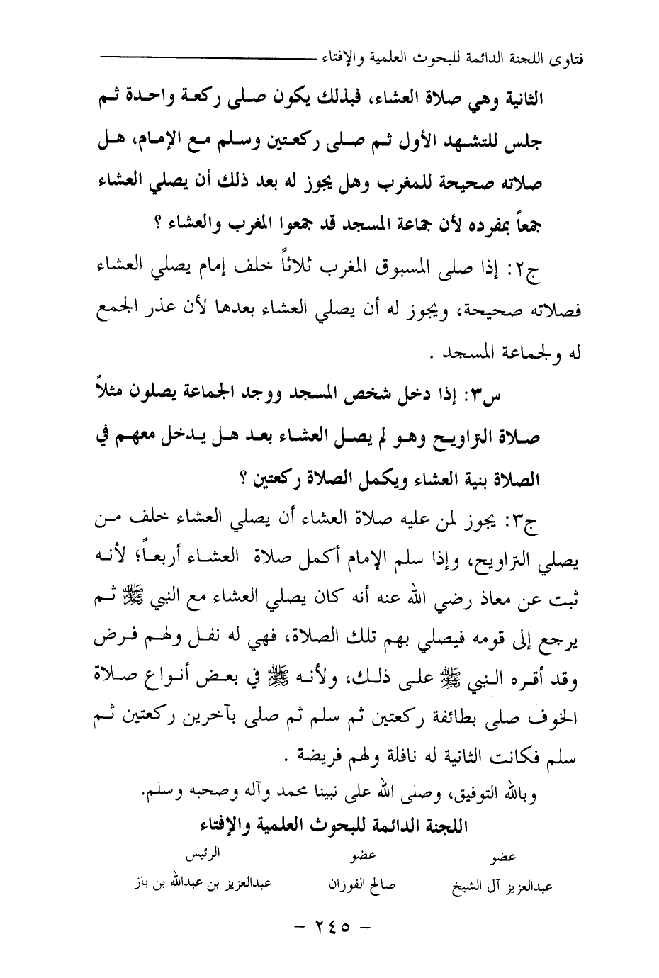 س3: إذا دخل شخص المسجد ووجد الجماعة يصلون مثلا صلاة التراويح وهو لم يصل العشاء بعد هل يدخل معهم في الصلاة بنية العشاء ويكمل الصلاة ركعتين؟