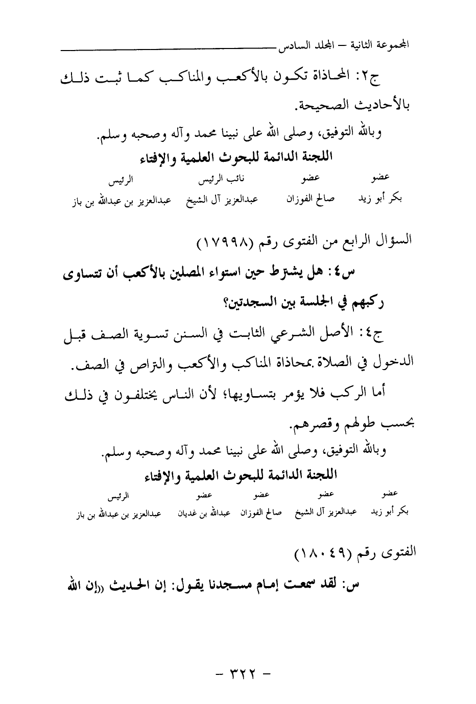 س4: هل يشترط حين استواء المصلين بالأكعب أن تتساوى ركبهم في الجلسة بين السجدتين؟