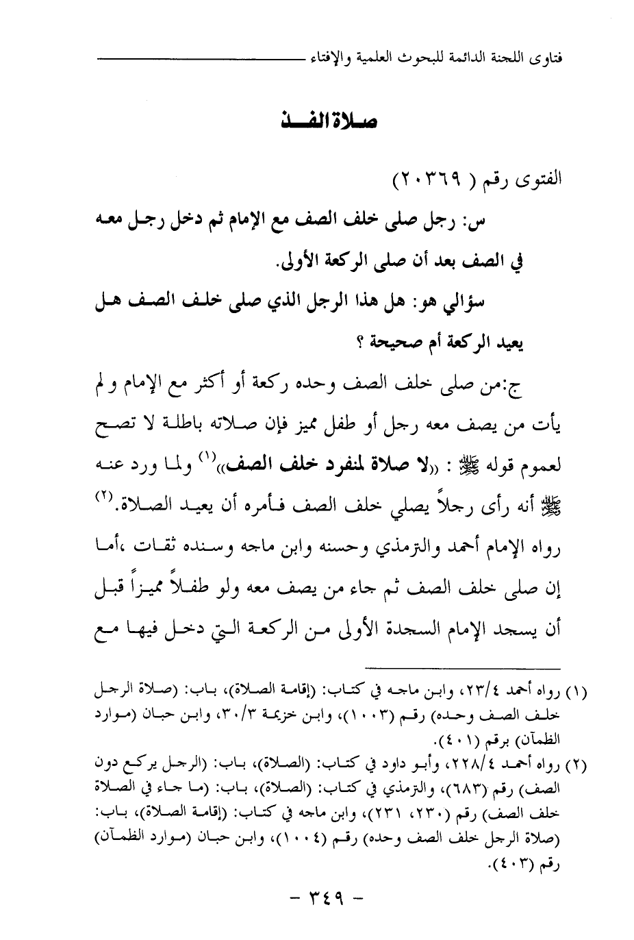 (¬1) رواه أحمد 4\23، وابن ماجه في كتاب: (إقامة الصلاة) ، باب: (صلاة الرجل خلف الصف وحده) رقم (1003) ، وابن خزيمة 3\ 30، وابن حبان (موارد الظمآن) برقم (401)