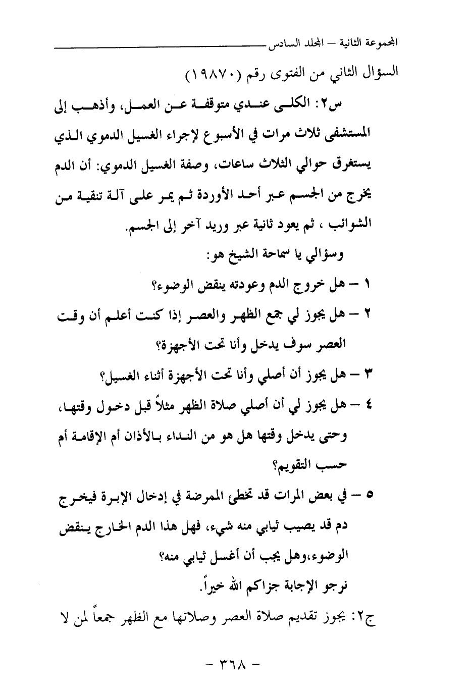 2 - هل يجوز لي جمع الظهر والعصر إذا كنت أعلم أن وقت العصر سوف يدخل وأنا تحت الأجهزة؟