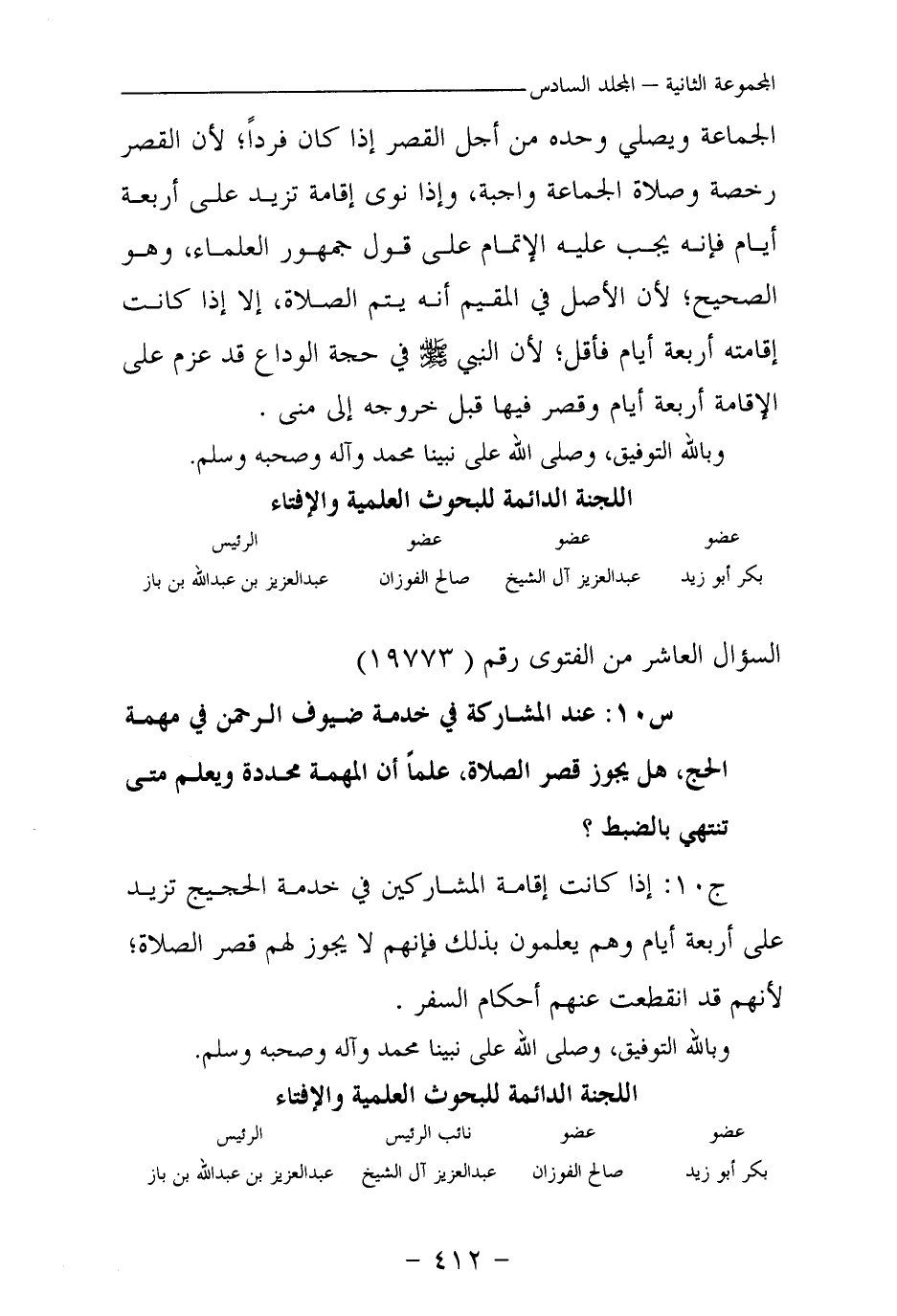س 10: عند المشاركة في خدمة ضيوف الرحمن في مهمة الحج، هل يجوز قصر الصلاة، علما أن المهمة محددة ويعلم متى تنتهي بالضبط؟