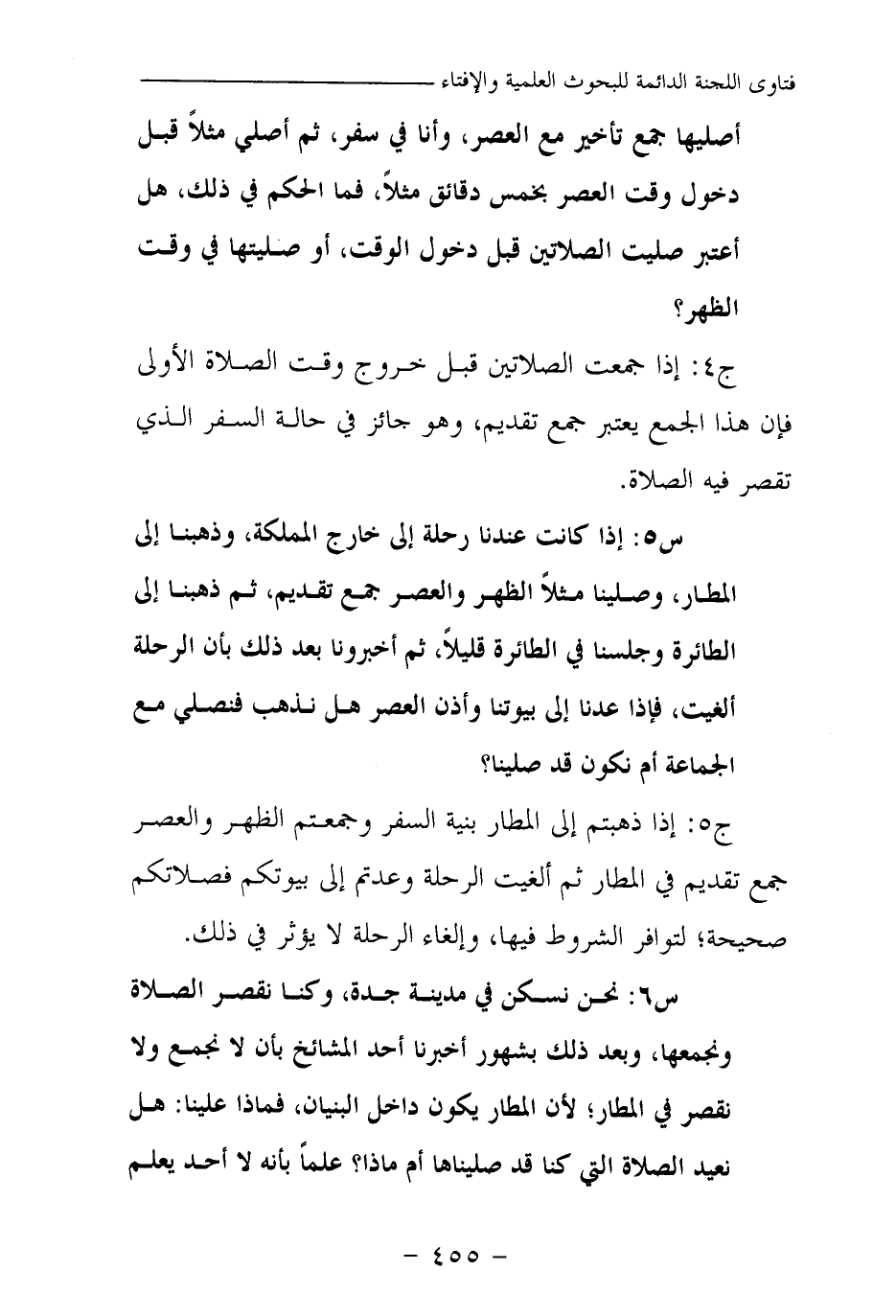 س 6: نحن نسكن في مدينة جدة، وكنا نقصر الصلاة ونجمعها، وبعد ذلك بشهور أخبرنا أحد المشائخ بأن لا نجمع ولا نقصر في المطار لأن المطار يكون داخل البنيان، فماذا علينا: هل نعيد الصلاة التي كنا قد صليناها أم ماذا؟ علما بأنه لا أحد يعلم