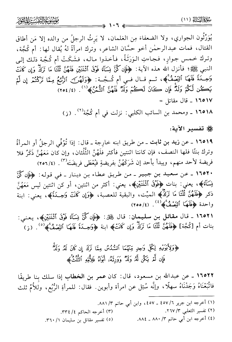 ١٦٥٢٠ - عن سعيد بن جبير -من طريق عطاء بن دينار- في قوله: {فإن كن نساء} يعني: بنات {فوق اثنتين} يعني: أكثر من اثنتين، أو كن اثنتين ليس مَعَهُنَّ ذكر {فلهن ثلثا ما ترك} الميِّت، والبقية للعصبة، {وإن كانت واحدة} يعني: ابنة واحدة {فلها النصف} (¬٤). (٤/ ٢٥٥)