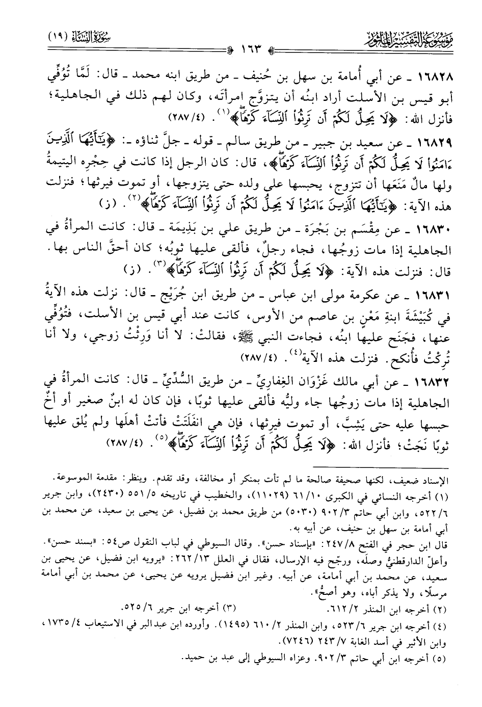 ١٦٨٢٩ - عن سعيد بن جبير -من طريق سالم- قوله -جل ثناؤه-: {يأيها الذين آمنوا لا يحل لكم أن ترثوا النساء كرها}، قال: كان الرجل إذا كانت في حِجْرِه اليتيمةُ ولها مالٌ مَنَعَها أن تتزوج، يحبسها على ولده حتى يتزوجها، أو تموت فيرثها؛ فنزلت هذه الآية: {يأيها الذين آمنوا لا يحل لكم أن ترثوا النساء كرها} (¬٢). (ز)