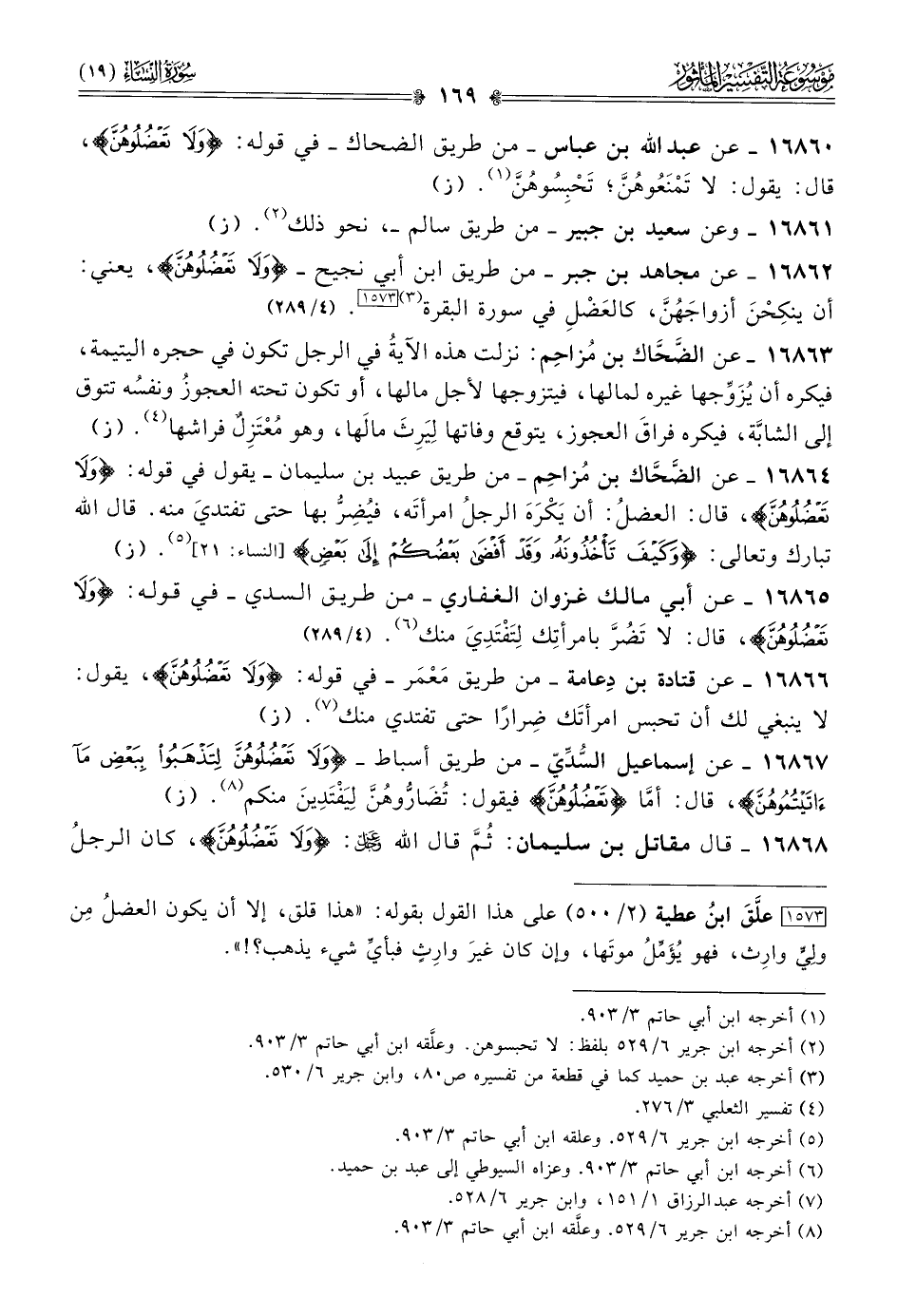 ١٦٨٦٢ - عن مجاهد بن جبر -من طريق ابن أبي نجيح- {ولا تعضلوهن}، يعني: أن ينكِحْنَ أزواجَهُنَّ، كالعَضْلِ في سورةالبقرة (¬٣) [١٥٧٣]. (٤/ ٢٨٩)