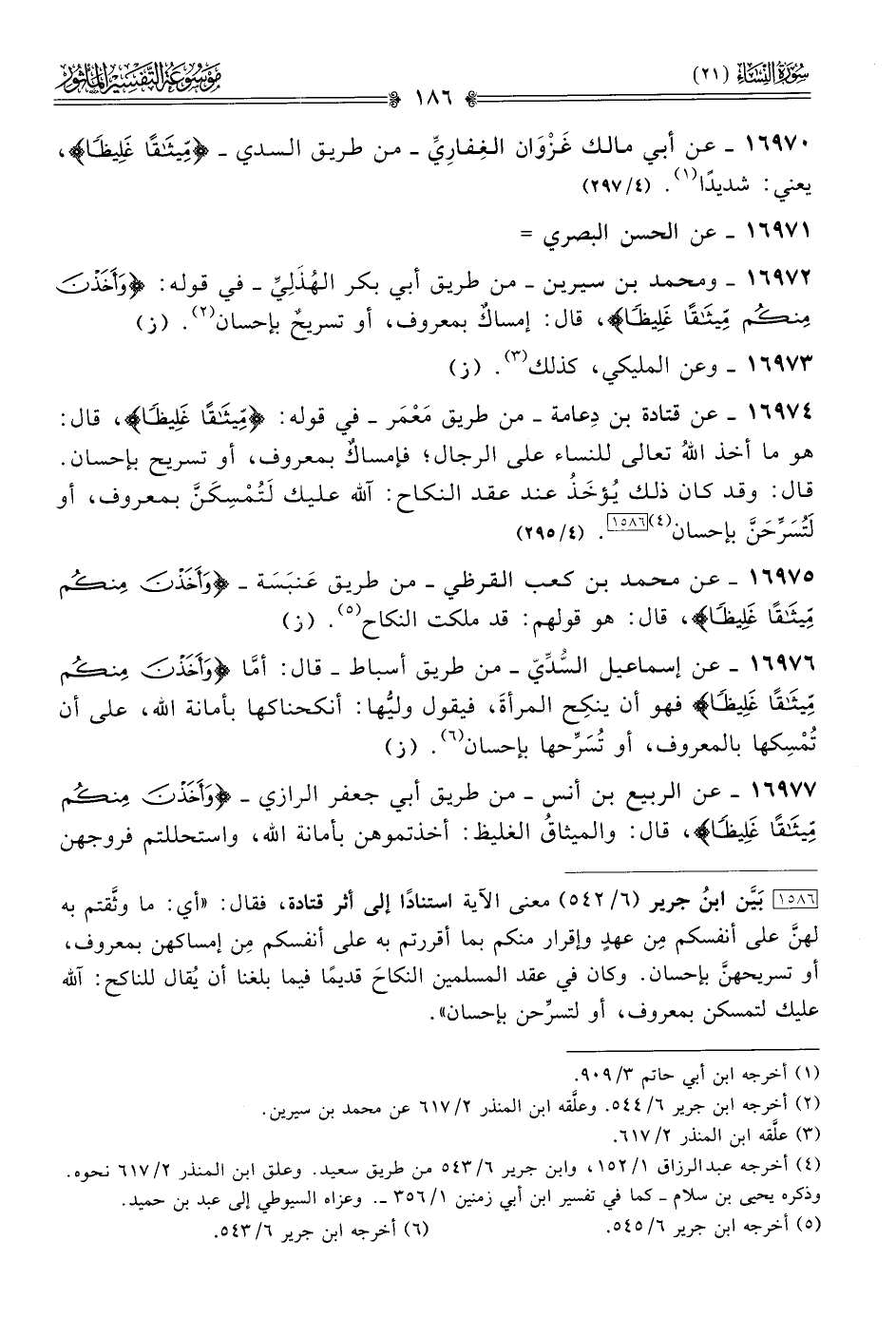 ١٦٩٧٢ - ومحمد بن سيرين -من طريق أبي بكر الهُذَلِيِّ- في قوله: {وأخذن منكم ميثاقا غليظا}، قال: إمساكٌ بمعروف، أو تسريحٌ بإحسان (¬٢). (ز)