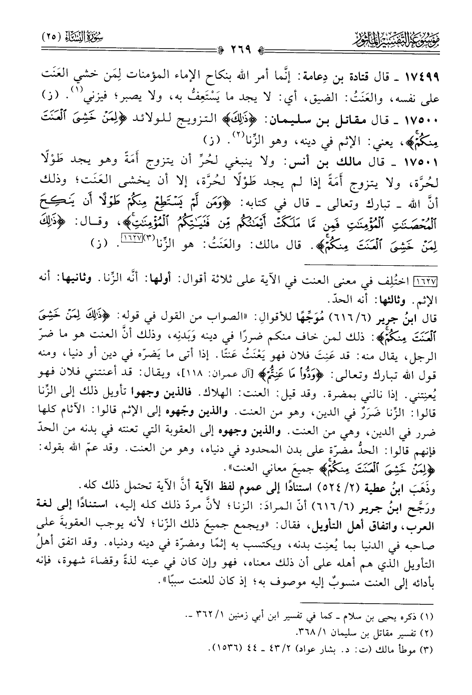[١٦٢٧] اختُلِف في معنى العنت في الآية على ثلاثة أقوال: أولها: أنّه الزِّنا. وثانيها: أنه الإثم. وثالثها: أنه الحدّ.