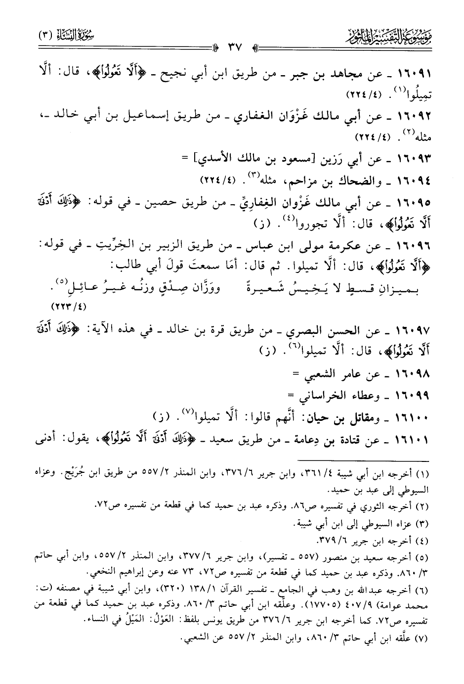 ١٦٠٩١ - عن مجاهد بن جبر -من طريق ابن أبي نجيح- {ألا تعولوا}، قال: ألّا تمِيلُوا (¬١). (٤/ ٢٢٤)