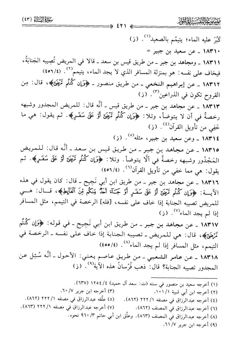 ١٨٣١٢ - عن إبراهيم النخعي -من طريق منصور- {وإن كنتم مرضى}، قال: مِن القروح تكون في الذراعين (¬٣). (ز)
