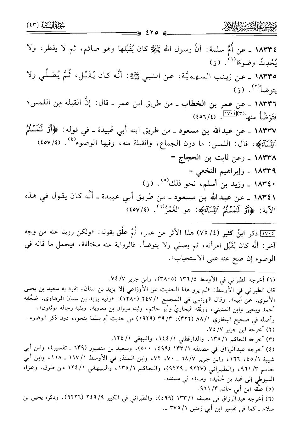(¬٤) أخرجه عبد الرزاق في مصنفه ١/ ١٣٣ (٤٩٩، ٥٠٠)، وسعيد بن منصور (٦٣٩ - تفسير)، وابن أبي شيبة ١/ ٤٥، ١٦٦، وابن جرير ٧/ ٦٨ - ٧٠، ٧٢، وابن المنذر في الأوسط ١/ ١١٧ - ١١٨، وابن أبي حاتم ٣/ ٩٦١، والطبراني (٩٢٢٧ - ٩٢٢٩)، والحاكم ١/ ١٣٥، والبيهقي ١/ ١٢٤ من طرق. وعزاه السيوطي إلى عَبد بن حُمَيد، ومسدد في مسنده.