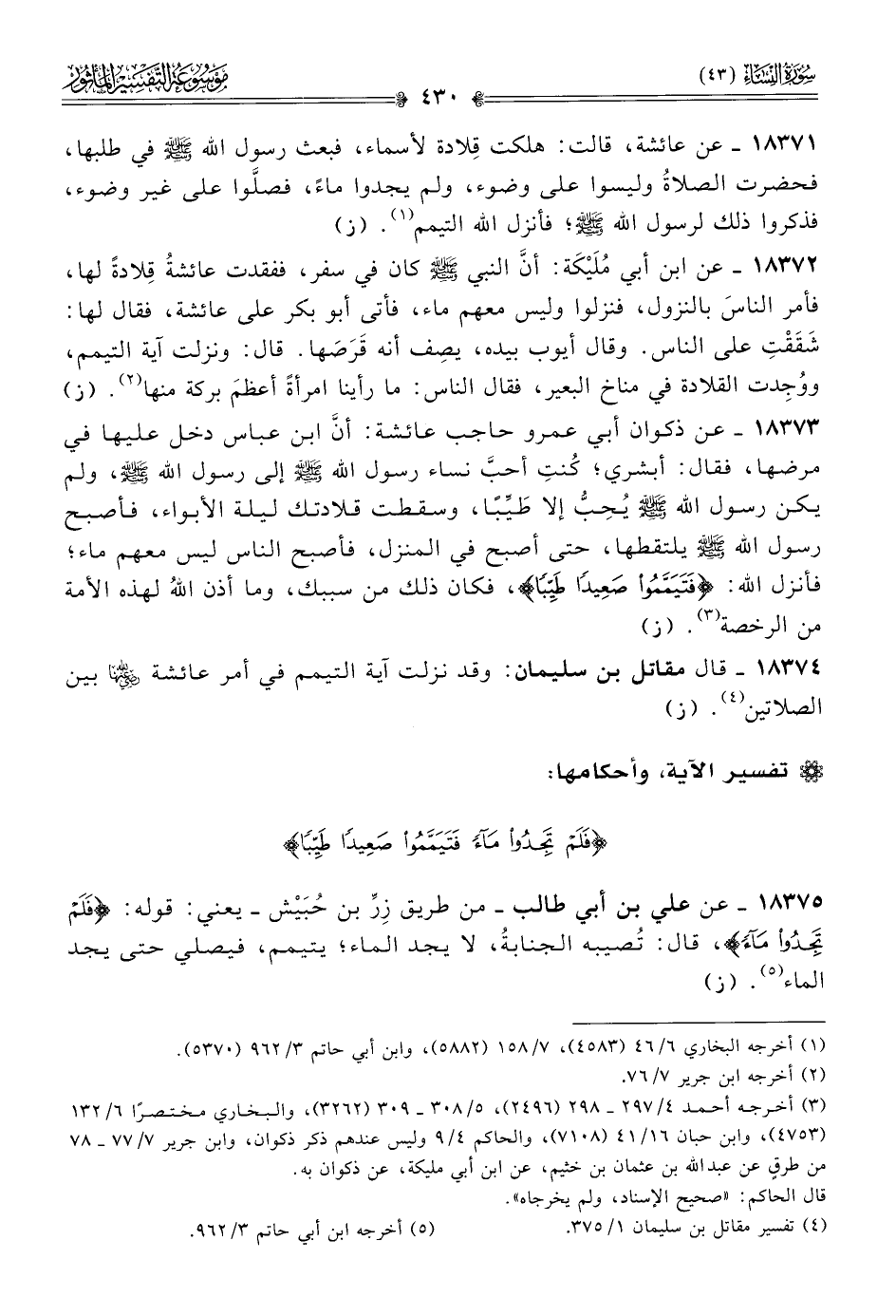 ١٨٣٧٤ - قال مقاتل بن سليمان: وقد نزلت آية التيمم في أمر عائشة - رضي الله عنها - بين الصلاتين (¬٤). (ز)