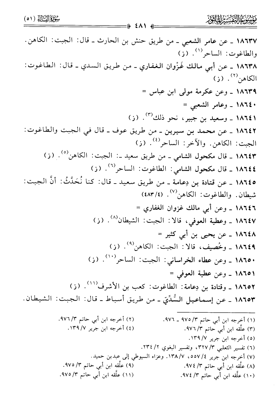 ١٨٦٥٠ - عن عطاء الخراساني: الجبت: الساحر (¬١٠). (ز)