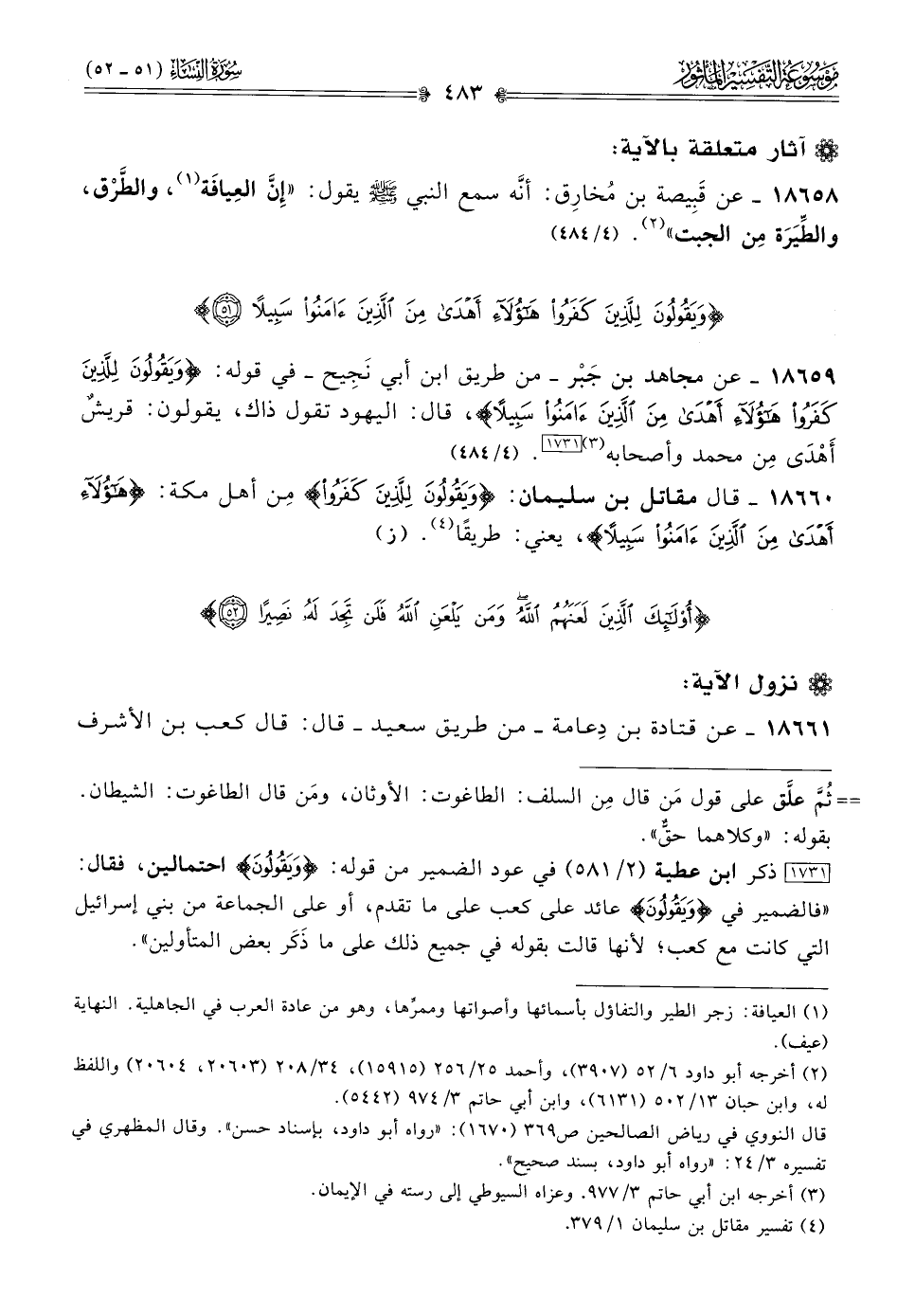 ١٨٦٥٩ - عن مجاهد بن جَبْر -من طريق ابن أبي نَجِيح- في قوله: {ويقولون للذين كفروا هؤلاء أهدى من الذين آمنوا سبيلا}، قال: اليهود تقول ذاك، يقولون: قريشٌ أهْدى مِن محمد وأصحابه (¬٣) [١٧٣١]. (٤/ ٤٨٤)