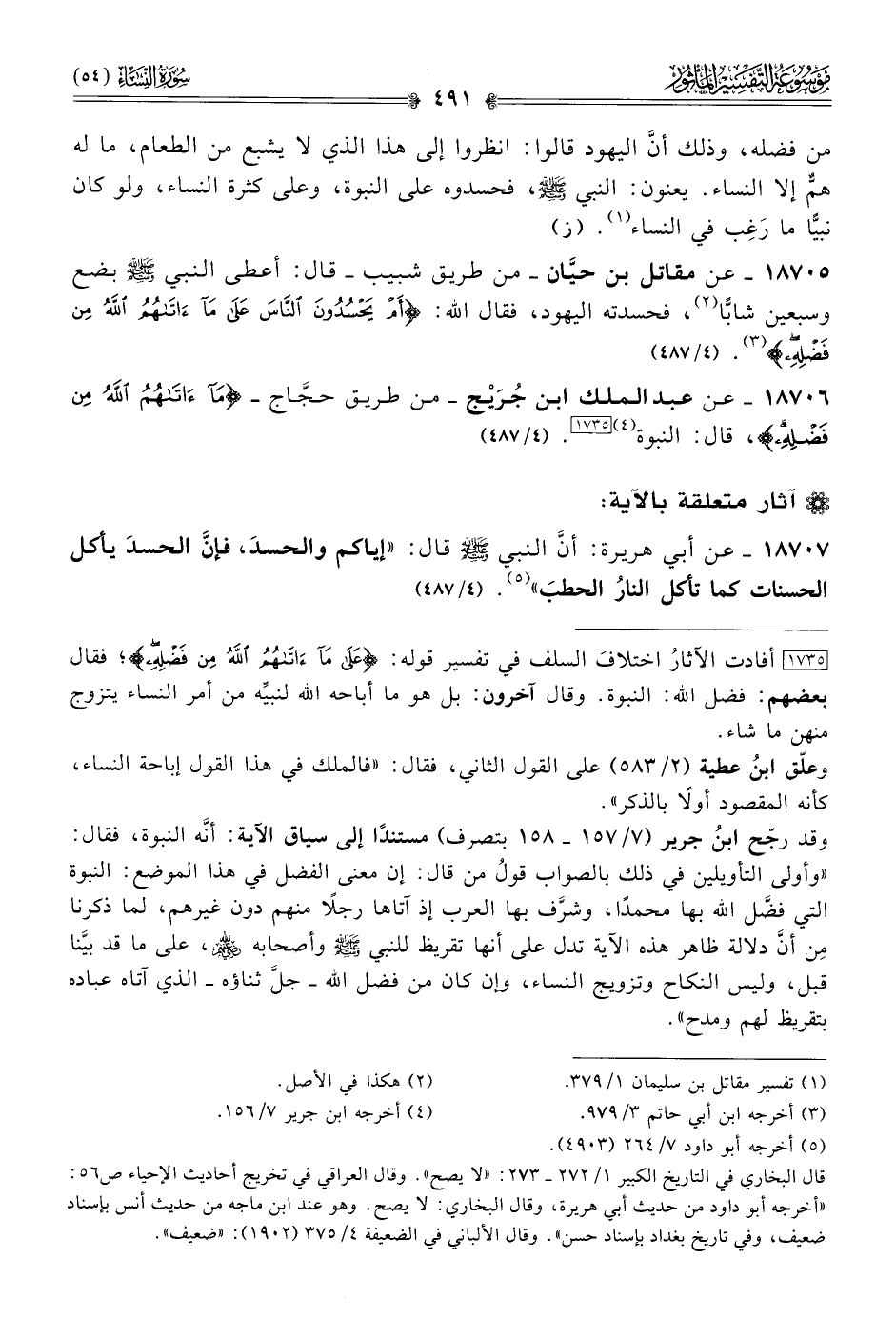 ١٨٧٠٦ - عن عبد الملك ابن جُرَيْج -من طريق حجّاج- {ما آتاهم الله من فضله}، قال: النبوة (¬٤) [١٧٣٥]. (٤/ ٤٨٧)