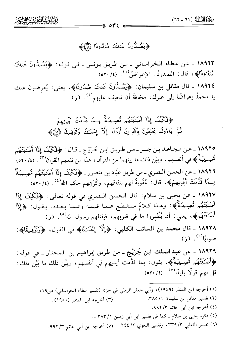 ١٨٩٢٤ - قال مقاتل بن سليمان: {يصدون عنك صدودا}، يعني: يُعرِضون عنك يا محمدُ إعراضًا إلى غيرك، مخافةَ أن تحيف عليهم (¬٢). (ز)