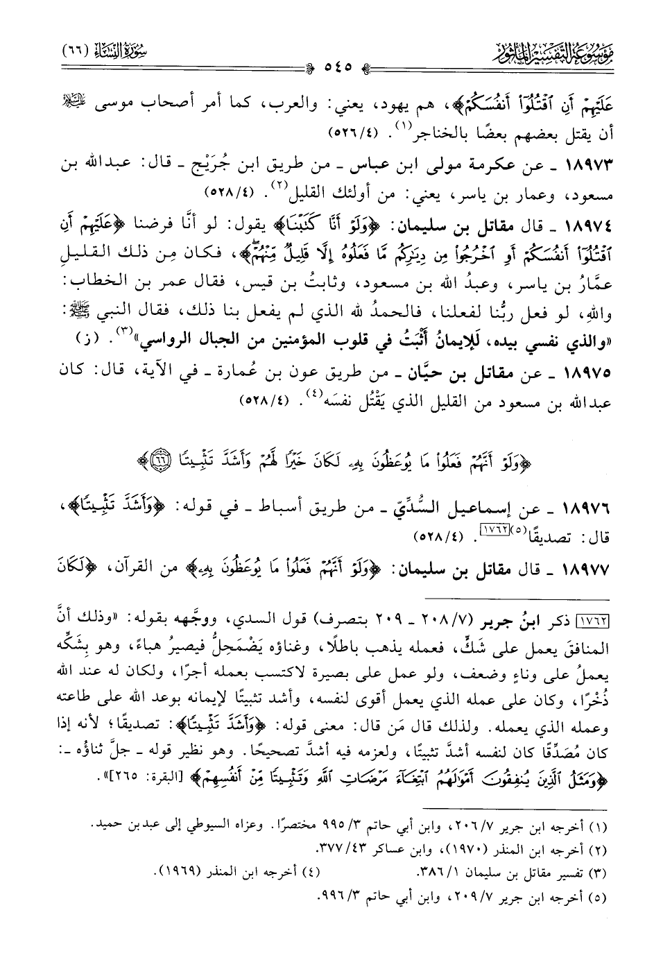 ١٨٩٧٦ - عن إسماعيل السُّدِّيّ -من طريق أسباط- في قوله: {وأشد تثبيتا}، قال: تصديقًا (¬٥) [١٧٦٢]. (٤/ ٥٢٨)