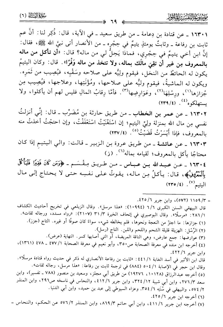 ١٦٣٠٤ - عن عبد الله بن عباس -من طريق مِقْسَم- {ومن كان فقيرا فليأكل بالمعروف}، قال: يأكلُ مِن ماله، يقوتُ على نفسِه حتى لا يحتاج إلى مال اليتيم (¬٧). (٤/ ٢٣٥)