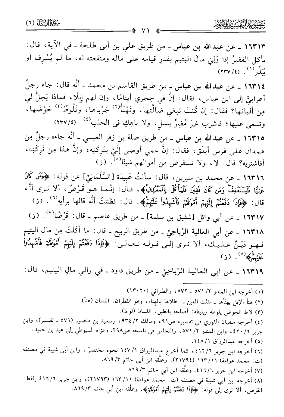 (¬٨) أخرجه ابن أبي شيبة في مصنفه (ت: محمد عوامة) ١١/ ١٦٣ (٢١٧٩٣)، وابن جرير ٦/ ٤١٦ بلفظ: القرض، ألا ترى إلى قوله: {فإذا دفعتم إليهم أموالهم}. وعلَّقه ابن أبي حاتم ٣/ ٨٦٩.