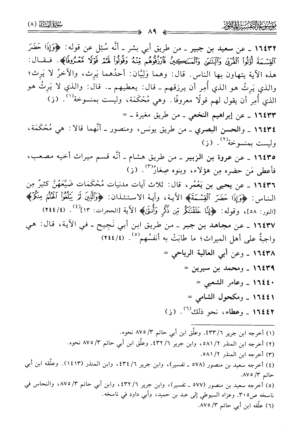 (¬٥) أخرجه سعيد بن منصور (٥٧٧ - تفسير)، وابن جرير ٦/ ٤٣٢، وابن أبي حاتم ٣/ ٨٧٥، والنحاس في ناسخه ص ٣٠٥. وعزاه السيوطي إلى عبد بن حميد، وأبي داود في ناسخه.