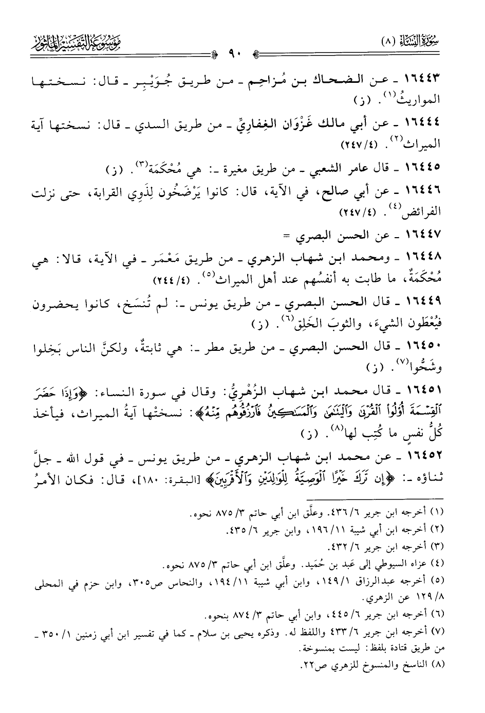 (¬٥) أخرجه عبد الرزاق ١/ ١٤٩، وابن أبي شيبة ١١/ ١٩٤، والنحاس ص ٣٠٥، وابن حزم في المحلى ٨/ ١٢٩ عن الزهري.