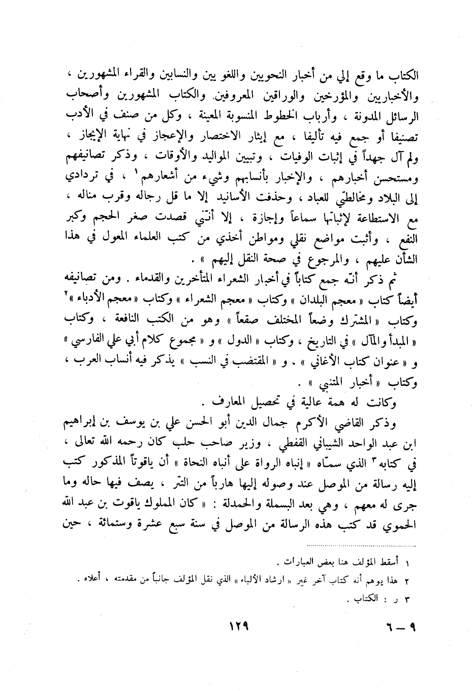 (2) هذا يوهم أنه كتاب آخر غير " إرشاد الألباء " الذي نقل المؤلف جانباً من مقدمته، أعلاه.