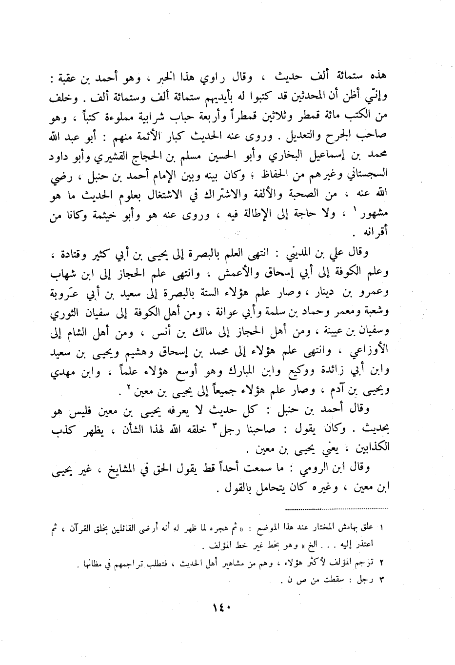 هذه ستمائة ألف حديث، وقال راوي هذا الخبر، وهو أحمد بن عقبة: وإني أظن أن المحدثين قد كتبوا بأيديهم ستمائة ألف وستمائة ألف. وخلف م الكتب مائة قمطر وثلاثين قمطراً وأربعة حباب شرابية مملوءة كتباً، وهو صاحب الجرح والتعديل. وروى عنه الحديث كبار الأئمة منهم: أبو عبد الله محمد بن إسماعيل البخاري وأبو الحسين مسلم بن الحجاج القشيري وأبو داود السجستاني، وغيرهم من الحفاظ، وكان بينه وبين الإمام أحمد بن حنبل، رضي الله عنه، من الصحبة والألفة والاشتراك في الاشتغال بعلوم الحديث ما هو مشهور (1) ، ولا حاجة إلى الإطالة فيه، وروى عنه هو وأبو خيثمة وكانا من أقرانه.