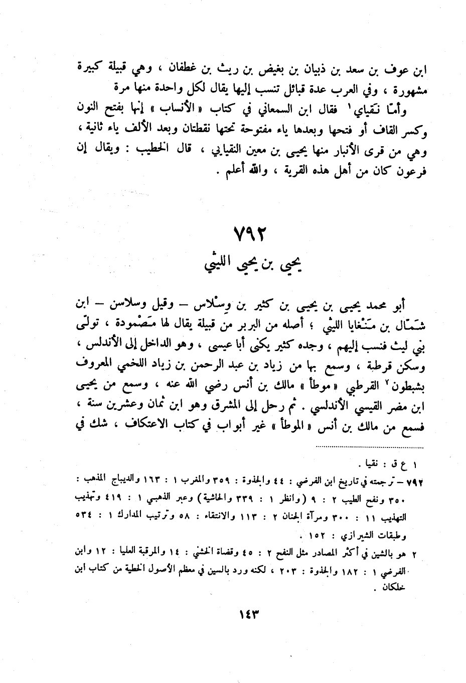 (2) ترجمته في تاريخ ابن الفرضي: 44 والجذوة: 359 والمغرب 1: 163 والديباج المذهب: 350 ونفح الطيب 2: 9 (وانظر 1: 339 والحاشية) وعبر الذهبي 1: 419 وتهذيب التهذيب 11: 300 ومرآة الجنان 2: 113 والانتقاء: 58 وترتيب المدارك 1: 534 وطبقات الشيرازي: 152.