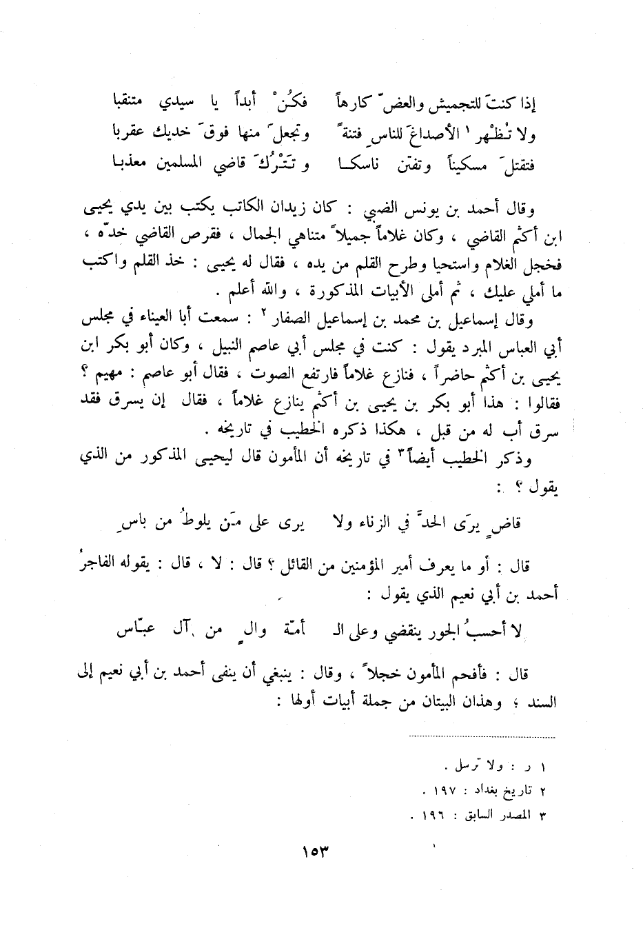 قاضٍ يرى الحد في الزناء ولا ... يرى على من يلوط من باس قال: أو ما يعرف أمير المؤمنين من القائل قال: لا، قال: يقوله الفاجر أحمد بن أبي نعيم الذي يقول: