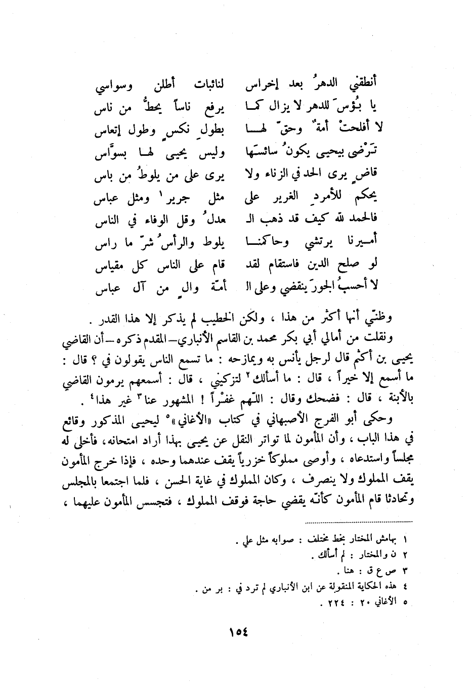 لا أحسب الجور ينقضي وعلى ال ... أمة والٍ من آل عباس وظني أنها أكثر من هذا، ولكن الخطيب لم يذكر إلا هذا القدر.