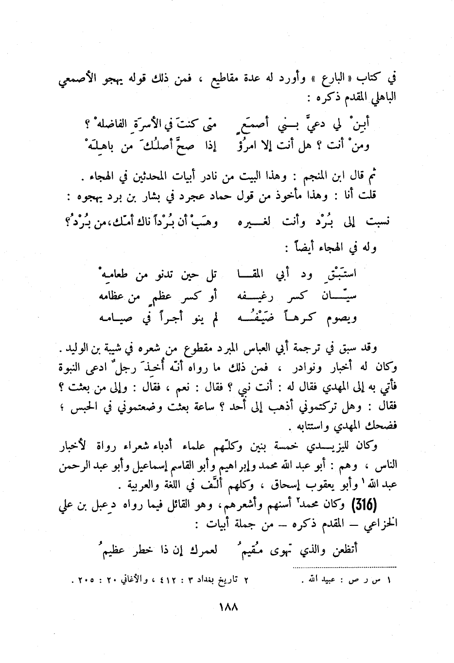 (2) تاريخ بغداد 3: 412، والأغاني 20: 205.