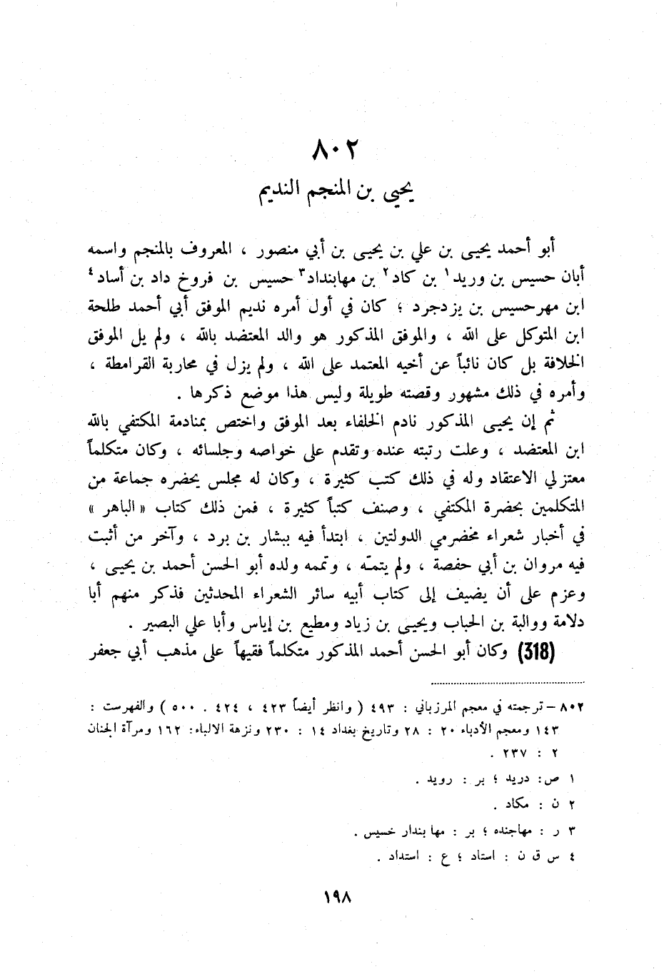 (1) ترجمته في معجم المرزباني: 493 (وانظر أيضاً 423، 424، 500) والفهرست: 143 ومعجم الأدباء 20: 28 وتاريخ بغداد 14: 230 ونزهة الألباء: 162 ومرآة الجنان 2: 237.