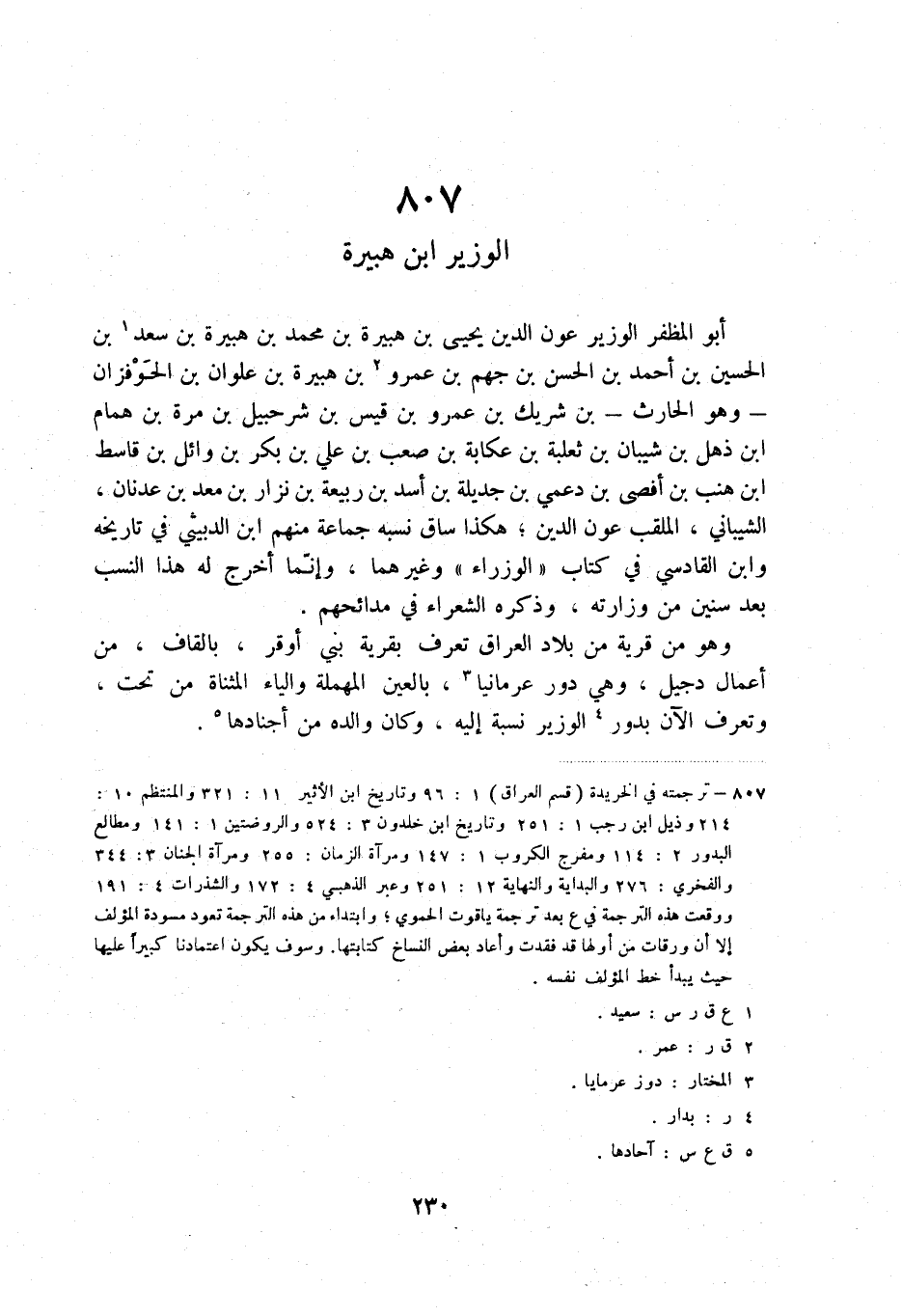 (1) ترجمته في الخريدة (قسم العراق) 1: 96 وتاريخ ابن الأثير 11: 321 والمنتظم 10: 214 وذيل ابن رجب 1: 251 وتاريخ ابن خلدون 3: 524 والروضتين 1: 141 ومطالع البدور 2: 114 ومفرج الكروب 1: 147 ومرآة الزمان: 255 ومرآة الجنان 3: 344 والفخري: 276 والبداية والنهاية 12: 251 وعبر الذهبي 4: 172 والشذرات 4: 191 ووقعت هذه الترجمة في ع بعد ترجمة ياقون الحموي؛ وابتداء من هذه الترجمة تعود مسودة المؤلف إلا أن ورقات من أولها قد فقدت وأعاد بعض النساخ كتابتها. وسوف يكون اعتمادنا كبيراً عليها حيث يبدأ خط المؤلف نفسه.