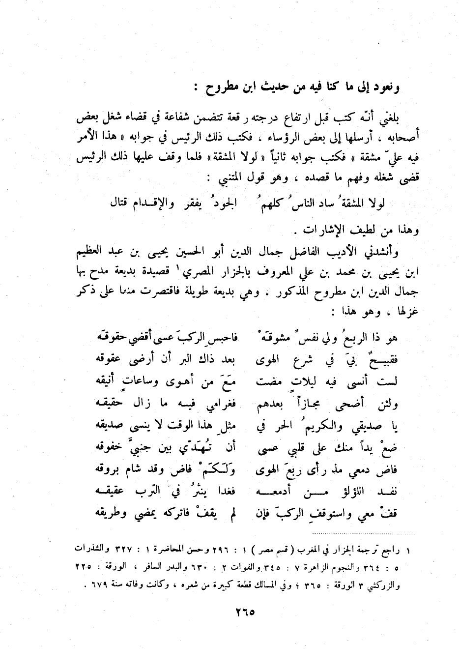 ونعود إلى ما كنا فيه من حديث ابن مطروح: