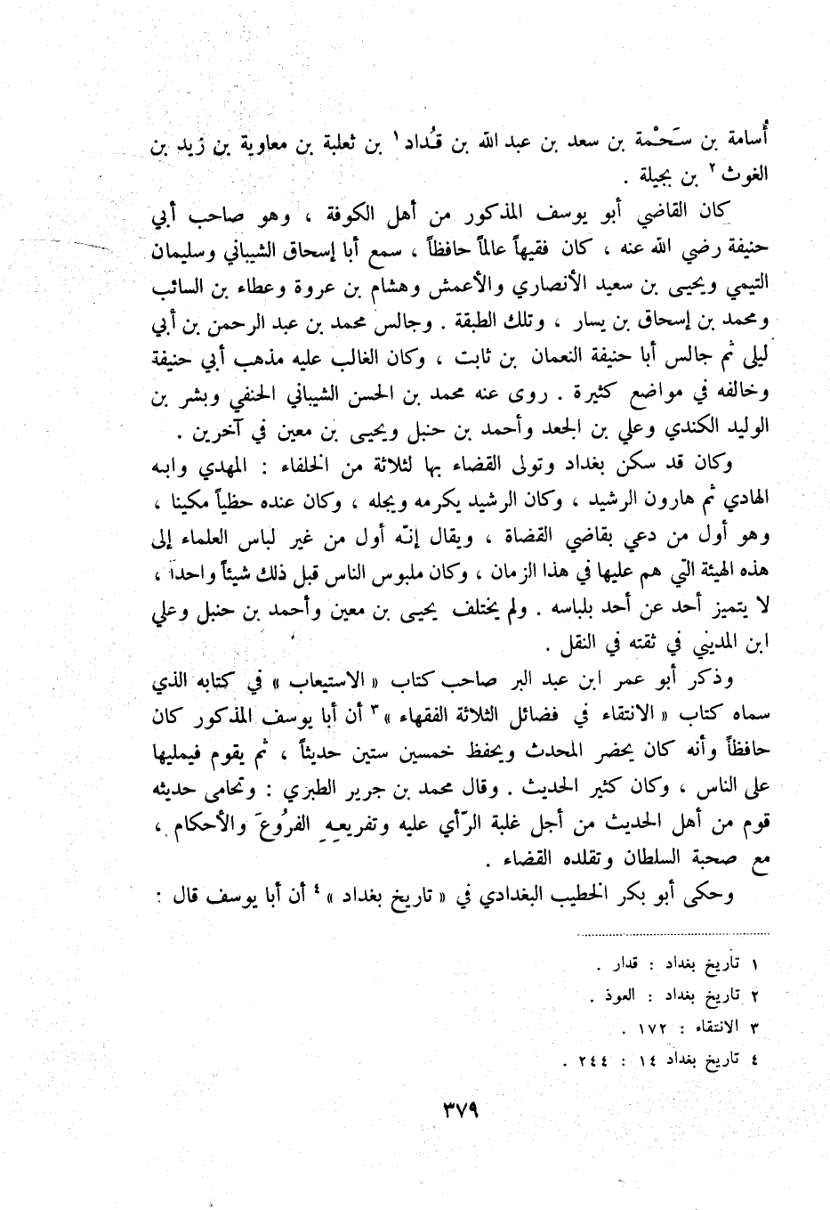 وحكى أبو بكر الخطيب البغدادي في " تاريخ بغداد " (4) أن أبا يوسف قال: