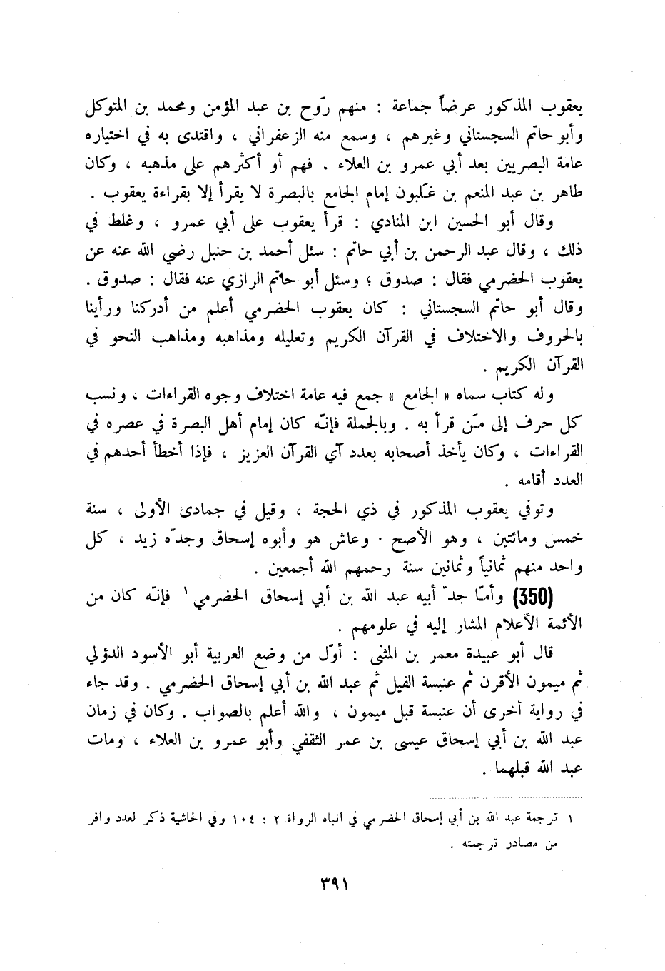 (1) ترجمة عبد الله بن أبي إسحاق الحضرمي في انباه الرواة 2: 104 وفي الحاشية ذكر لعدد وافر من مصادر ترجمته.