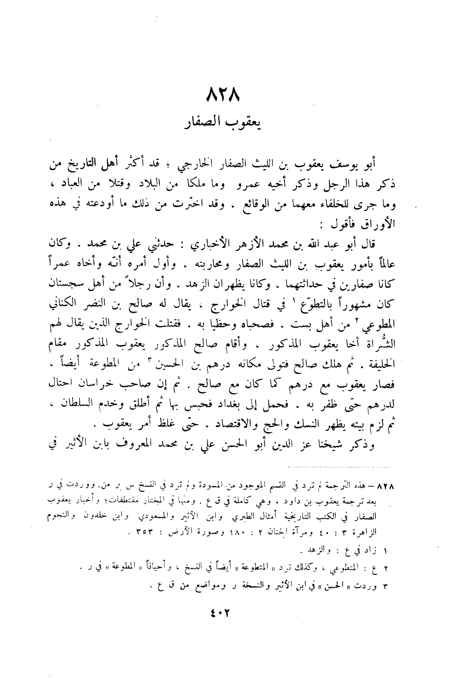 (1) هذه الترجمة لم ترد في القسم الموجود من المسودة ولم ترد في النسخ س بر من. ووردت في ر بعد ترجمة يعقوب بن داود، وهي كاملة في ق ع. ومنها في المختار مقتطفات؛ وأخبار يعقوب الصفار في الكتب التاريخية أمثال الطبري وابن الأثير والمسعودي وابن خلدون والنجوم الزاهرة 3: 40 ومرآة الجنان 2: 180 وصورة الأرض: 353.