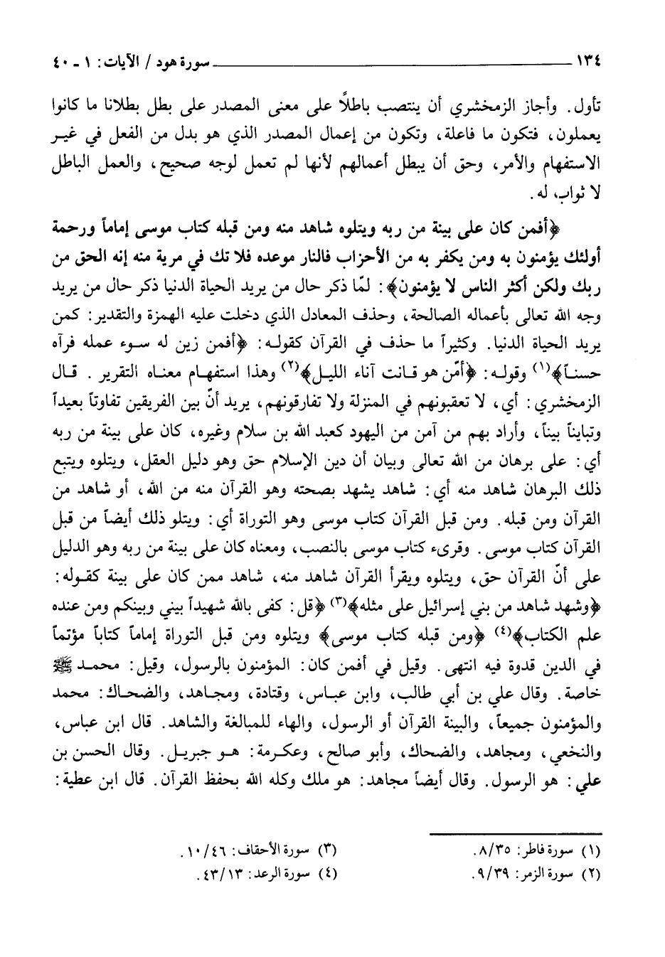 وَشَهِدَ شاهِدٌ مِنْ بَنِي إِسْرائِيلَ عَلى مِثْلِهِ «3» قُلْ: كَفى بِاللَّهِ شَهِيداً بَيْنِي وَبَيْنَكُمْ وَمَنْ عِنْدَهُ عِلْمُ الْكِتابِ «4» وَمِنْ قَبْلِهِ كِتابُ مُوسى وَيَتْلُوهُ وَمِنْ قَبْلِ التَّوْرَاةِ إِمَامًا كِتَابًا مُؤْتَمًّا فِي الدِّينِ قُدْوَةً فِيهِ انْتَهَى. وَقِيلَ فِي أَفَمَنْ كَانَ: الْمُؤْمِنُونَ بِالرَّسُولِ،