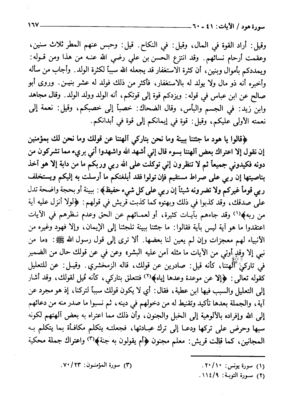 قالُوا يَا هُودُ مَا جِئْتَنا بِبَيِّنَةٍ وَما نَحْنُ بِتارِكِي آلِهَتِنا عَنْ قَوْلِكَ وَما نَحْنُ لَكَ بِمُؤْمِنِينَ إِنْ نَقُولُ إِلَّا اعْتَراكَ بَعْضُ آلِهَتِنا بِسُوءٍ قالَ إِنِّي أُشْهِدُ اللَّهَ وَاشْهَدُوا أَنِّي بَرِيءٌ مِمَّا تُشْرِكُونَ مِنْ دُونِهِ فَكِيدُونِي جَمِيعاً ثُمَّ لا تُنْظِرُونِ إِنِّي تَوَكَّلْتُ عَلَى اللَّهِ رَبِّي وَرَبِّكُمْ مَا مِنْ دَابَّةٍ إِلَّا هُوَ آخِذٌ بِناصِيَتِها إِنَّ رَبِّي عَلى صِراطٍ مُسْتَقِيمٍ فَإِنْ تَوَلَّوْا فَقَدْ أَبْلَغْتُكُمْ مَا أُرْسِلْتُ بِهِ إِلَيْكُمْ وَيَسْتَخْلِفُ رَبِّي قَوْماً غَيْرَكُمْ وَلا تَضُرُّونَهُ شَيْئاً إِنَّ رَبِّي عَلى كُلِّ شَيْءٍ حَفِيظٌ: بِبَيِّنَةٍ أَوْ بِحُجَّةٍ وَاضِحَةٍ تَدُلُّ عَلَى صِدْقِكَ، وَقَدْ كَذَبُوا فِي ذَلِكَ وَبَهَتُوهُ كَمَا كَذَّبَتْ قُرَيْشٌ فِي قَوْلِهِمْ: لَوْلا أُنْزِلَ عَلَيْهِ آيَةٌ مِنْ رَبِّهِ «1» وَقَدْ جَاءَهُمْ بِآيَاتٍ كَثِيرَةٍ، أَوْ لِعَمَائِهِمْ عَنِ الْحَقِّ وَعَدَمِ نَظَرِهِمْ فِي الْآيَاتِ اعْتَقَدُوا مَا هُوَ آيَةٌ لَيْسَ بِآيَةٍ فَقَالُوا: مَا جِئْتَنَا بِبَيِّنَةٍ تُلْجِئُنَا إِلَى الْإِيمَانِ، وَإِلَّا فَهُودٌ وَغَيْرُهُ مِنَ الْأَنْبِيَاءِ لَهُمْ مُعْجِزَاتٌ وَإِنْ لَمْ يُعَيِّنْ لَنَا بَعْضَهَا. أَلَا تَرَى إِلَى