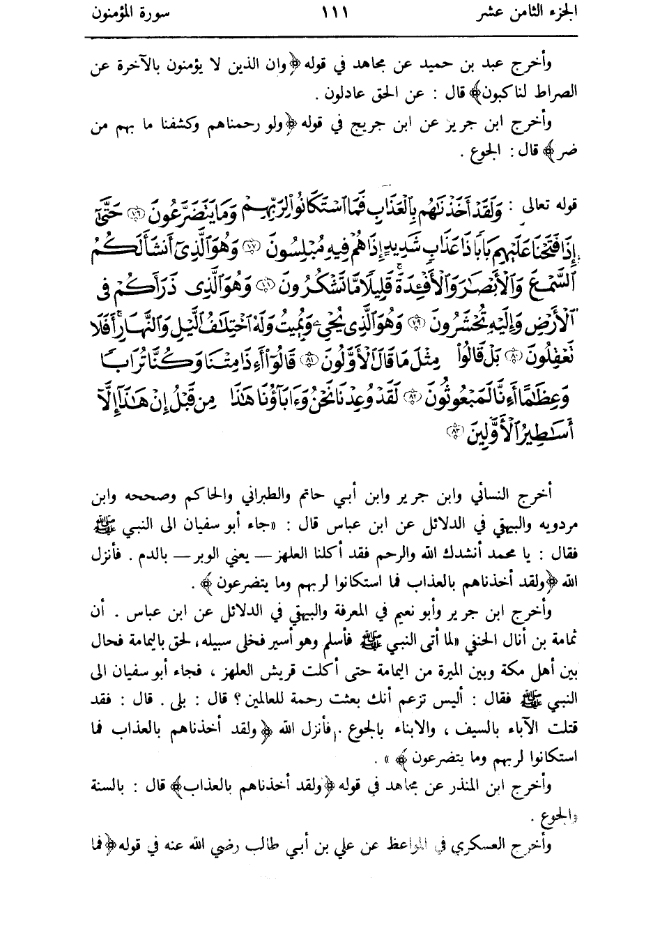 وَأخرج ابْن الْمُنْذر عَن مُجَاهِد فِي قَوْله {وَلَقَد أَخَذْنَاهُم بِالْعَذَابِ} قَالَ: بِالسنةِ والجوع