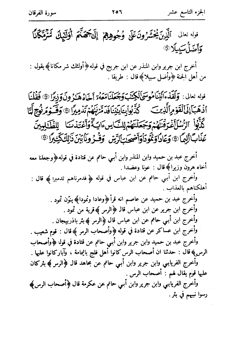 وَأخرج ابْن جرير عَن ابْن عَبَّاس قَالَ {الرس} قَرْيَة من ثَمُود