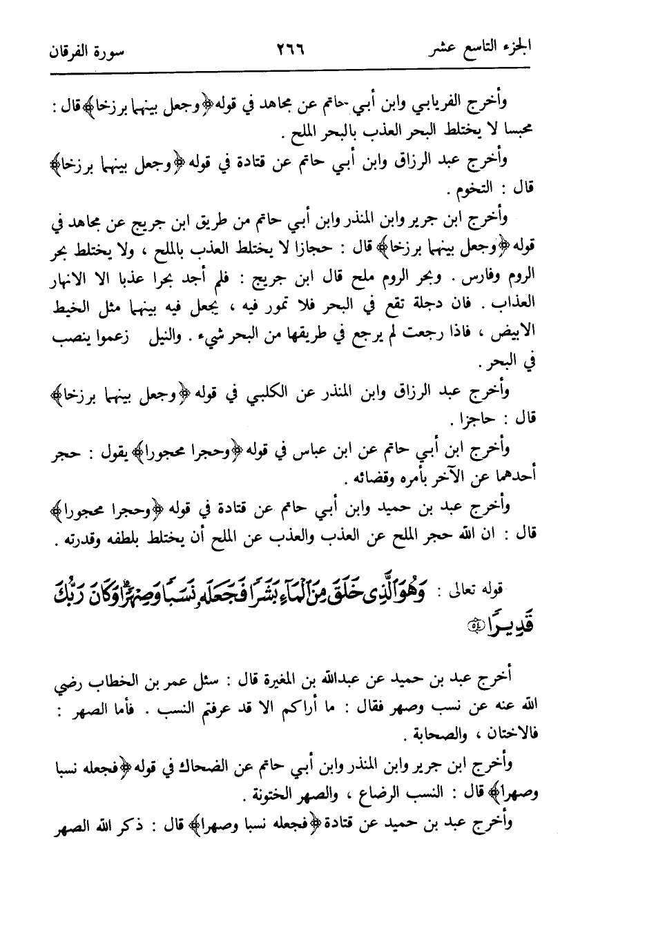 وَأخرج عبد الرَّزَّاق وَابْن أبي حَاتِم عَن قَتَادَة فِي قَوْله {وَجعل بَينهمَا برزخاً} قَالَ: التخوم