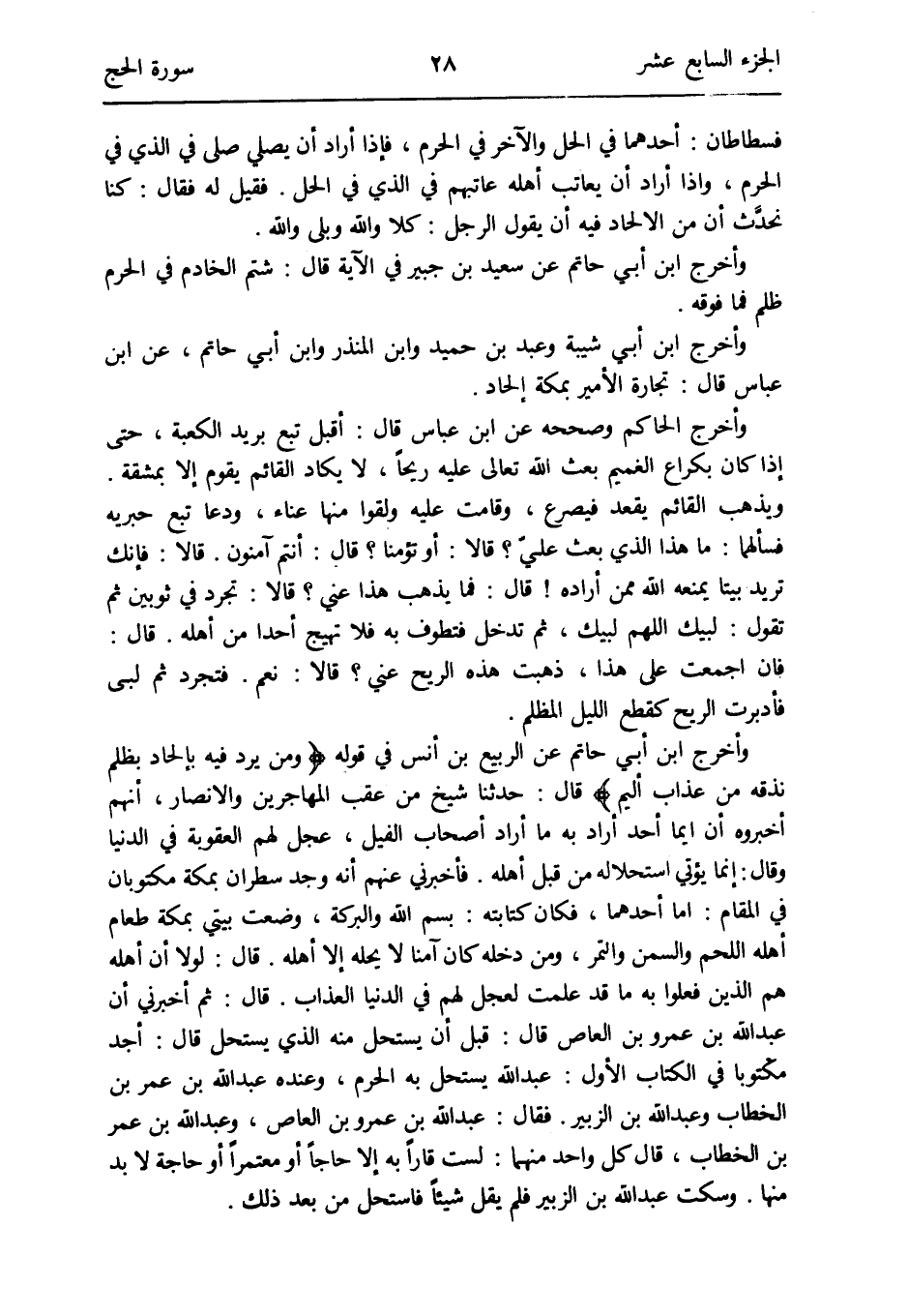 وَأخرج ابْن أبي شيبَة وَعبد بن حميد وَابْن الْمُنْذر وَابْن أبي حَاتِم عَن ابْن عَبَّاس قَالَ: تِجَارَة الْأَمِير بِمَكَّة إلحاد