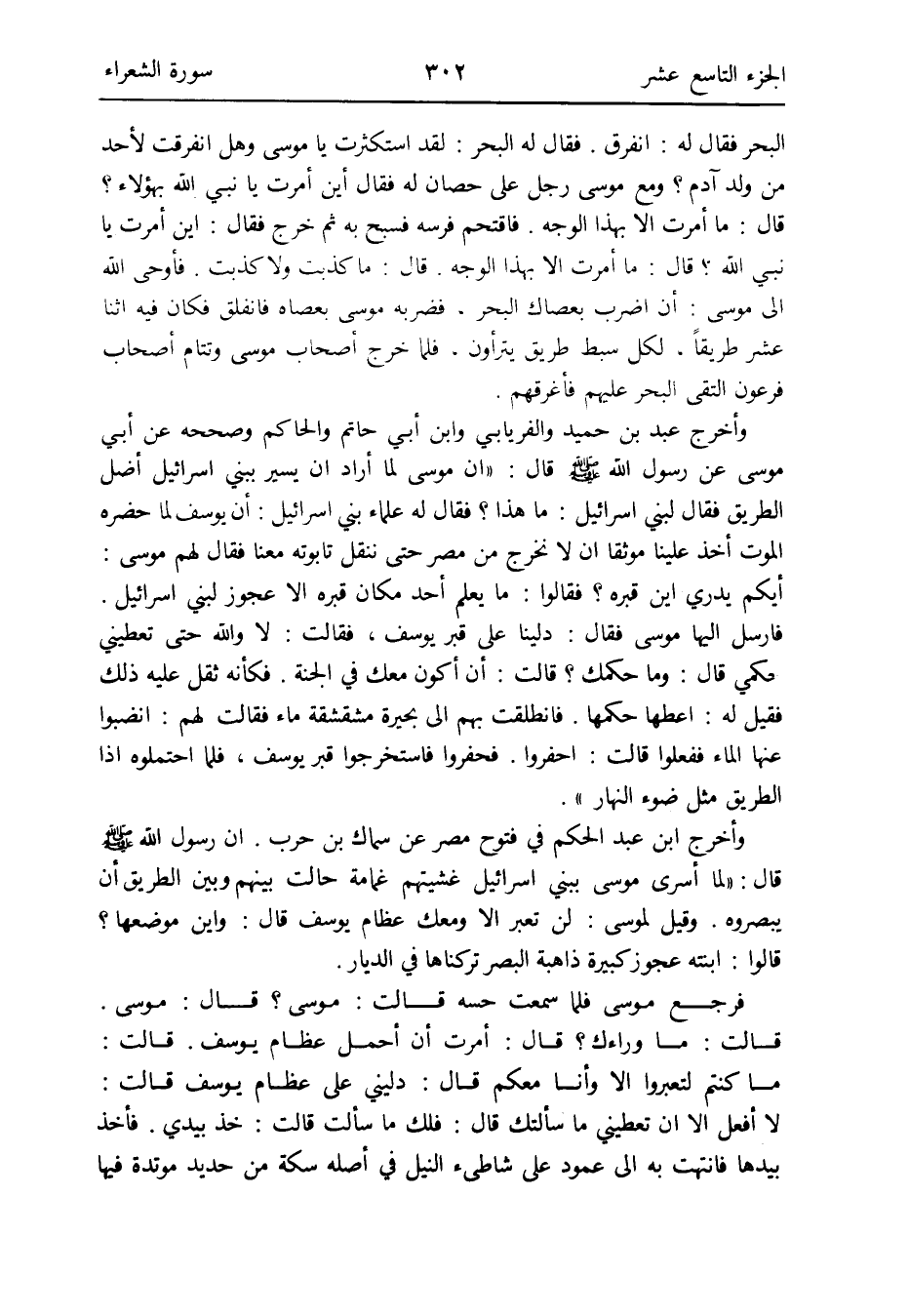 فَحَفَرُوا فَاسْتَخْرَجُوا قبر يُوسُف فَلَمَّا احتملوه إِذا الطَّرِيق مثل ضوء النَّهَار