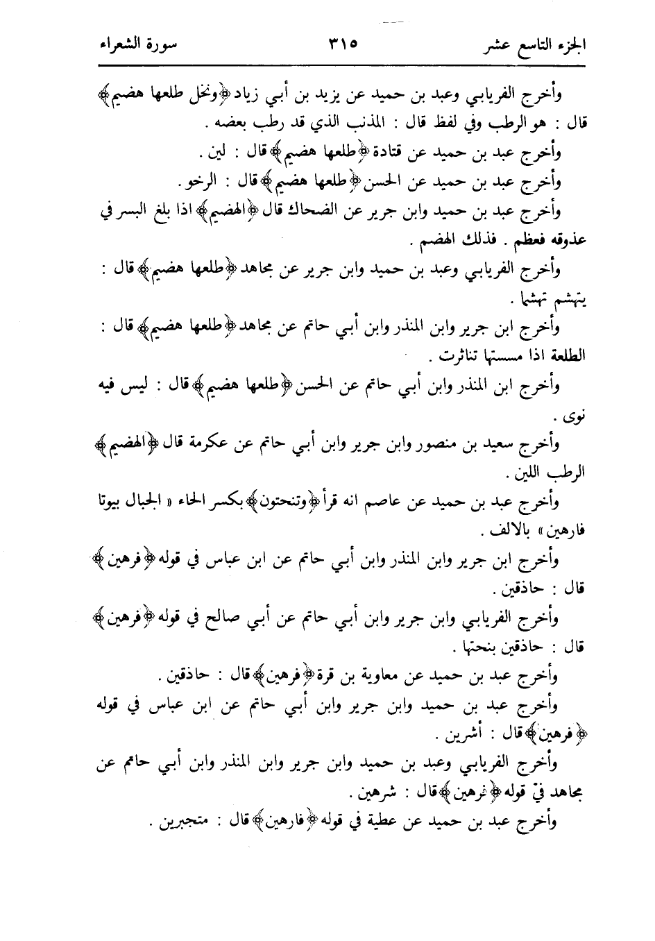وَأخرج الْفرْيَابِيّ وَعبد بن حميد وَابْن جرير عَن مُجَاهِد {طلعها هضيم} قَالَ: يتهشم تهشماً