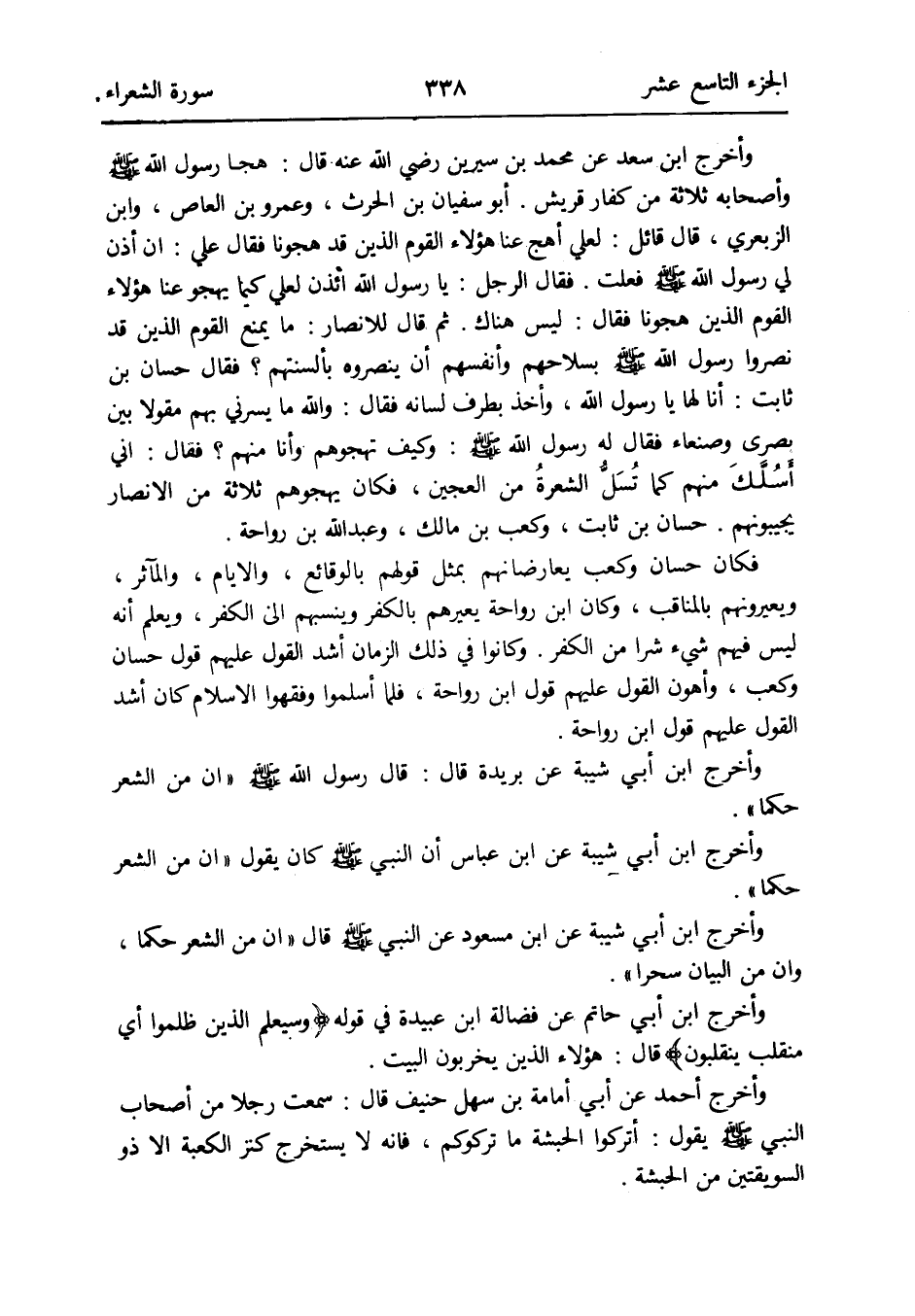 وَأخرج ابْن أبي شيبَة عَن ابْن عَبَّاس أَن النَّبِي صلى الله عَلَيْهِ وَسلم كَانَ يَقُول إِن من الشّعْر حكما
