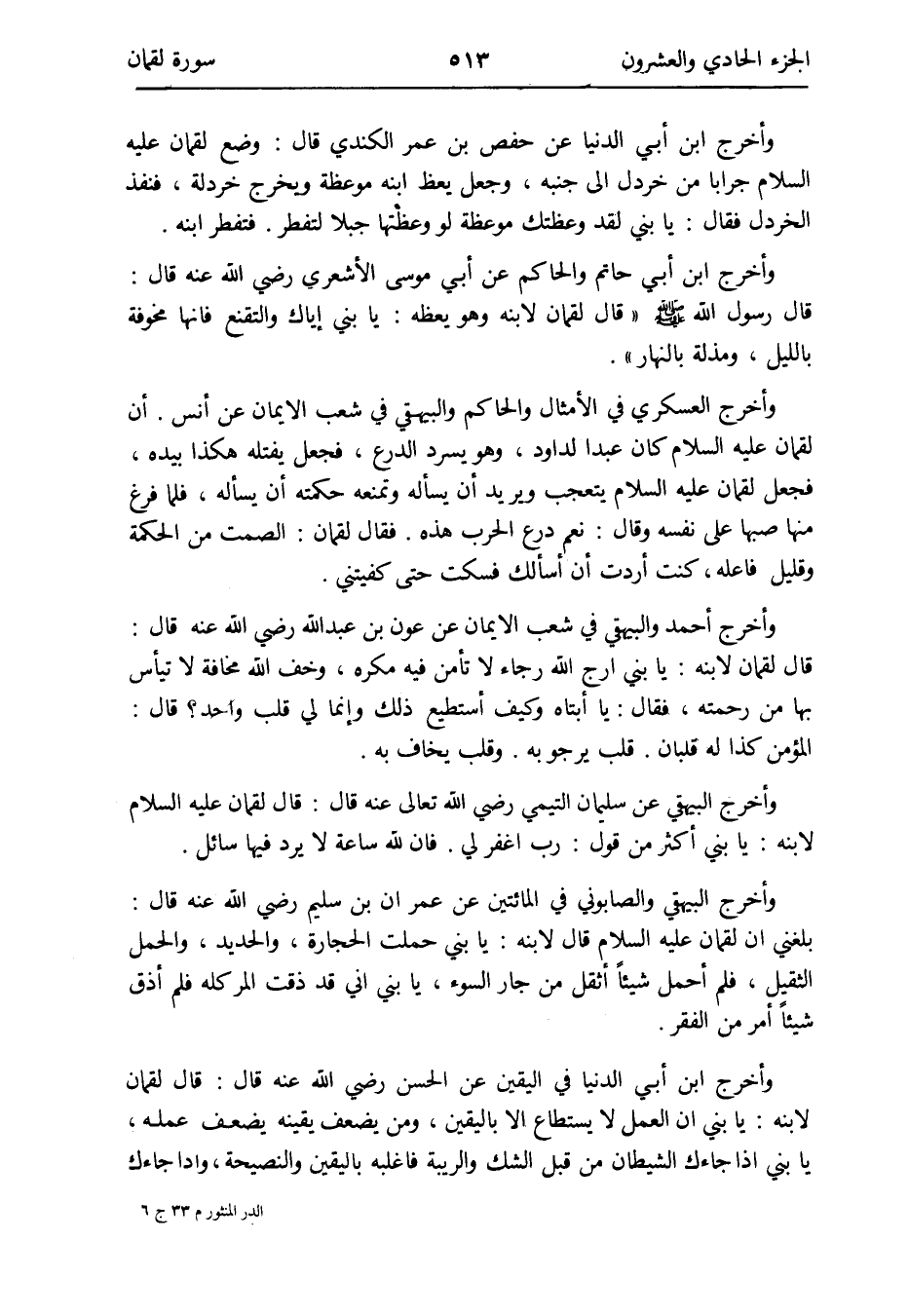 وَأخرج الْبَيْهَقِيّ عَن سُلَيْمَان التَّيْمِيّ رَضِي الله تَعَالَى عَنهُ قَالَ: قَالَ لُقْمَان عَلَيْهِ السَّلَام لِابْنِهِ: يَا بني أَكثر من قَول: رب اغْفِر لي