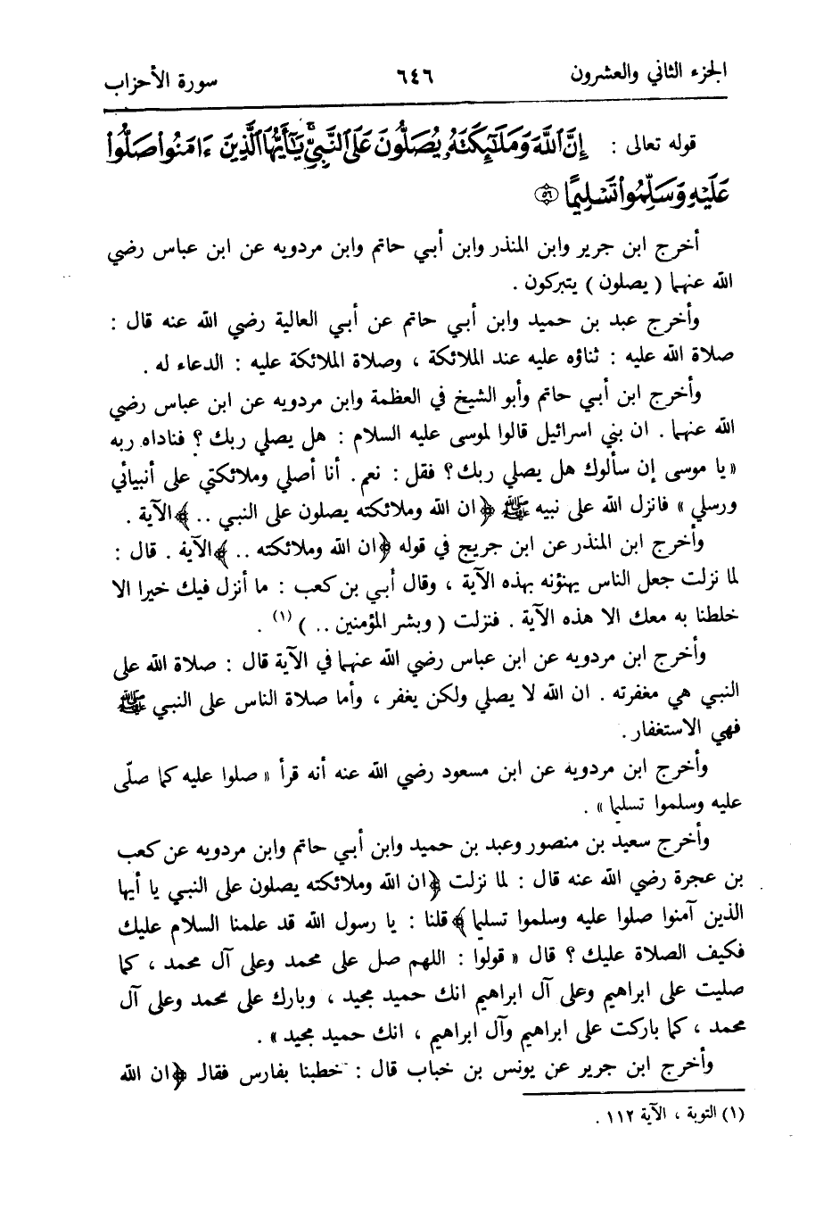 وَأخرج ابْن مردوية عَن ابْن عَبَّاس رَضِي الله عَنْهُمَا فِي الْآيَة قَالَ: صَلَاة الله على النَّبِي هِيَ مغفرته